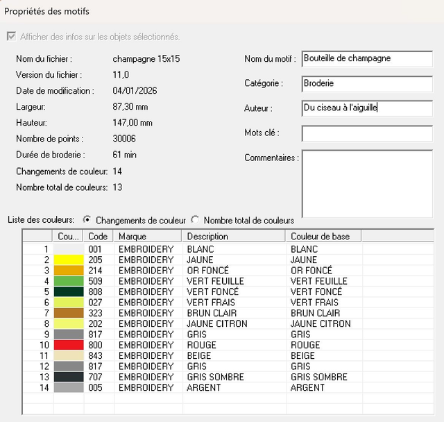 Voici ma broderie "Champagne" en 2 tailles pour 12 formats :