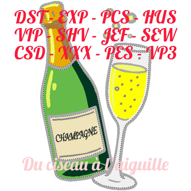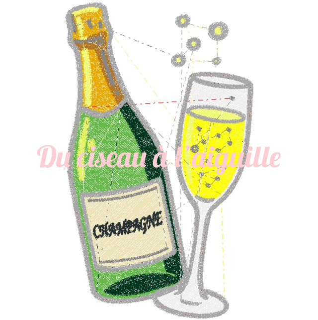 fichier broderie Bouteille de champagne en appliqué - 2 Tailles / 12 Formats