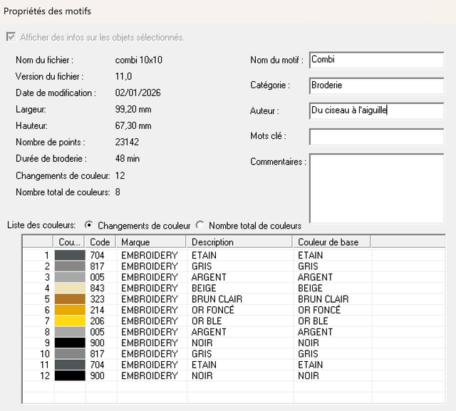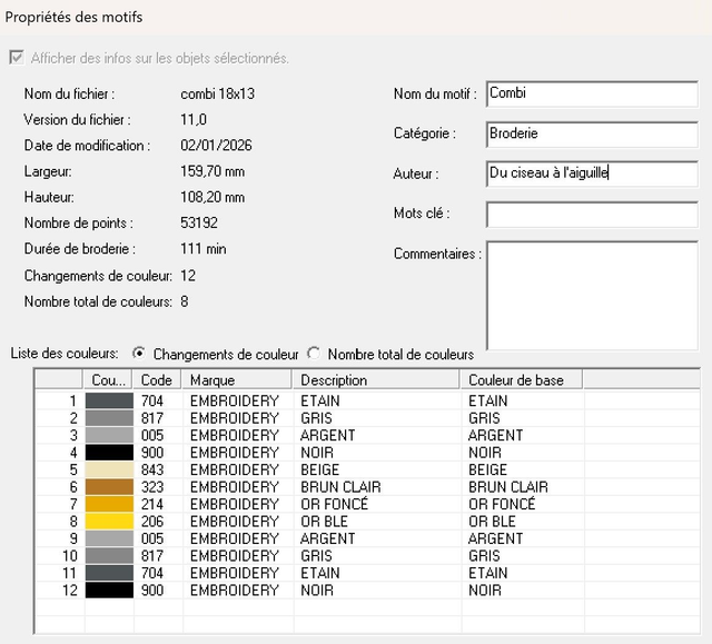 Voici ma broderie "Combi de profil" en 2 tailles pour 12 formats :