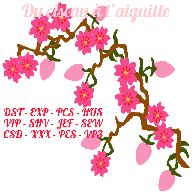 Voici ma broderie "Fleurs de sakura" en 3 tailles pour 12 formats :