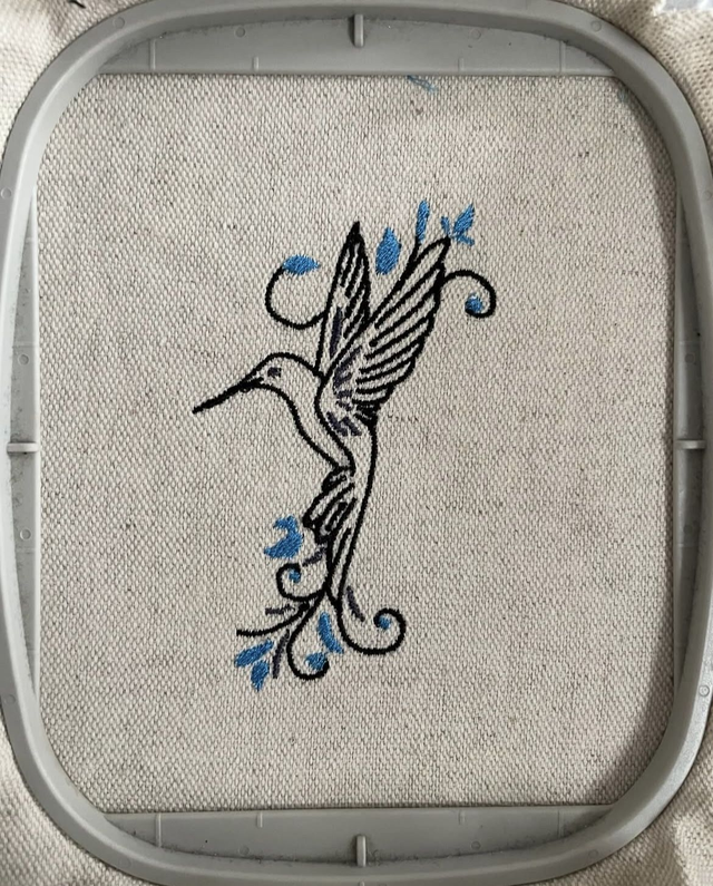 Voici ma broderie "Oiseau" en cadre 10x10 pour 12 formats :