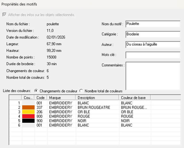 Ainsi que les fichier de la broderie à mettre sur clefs USB :