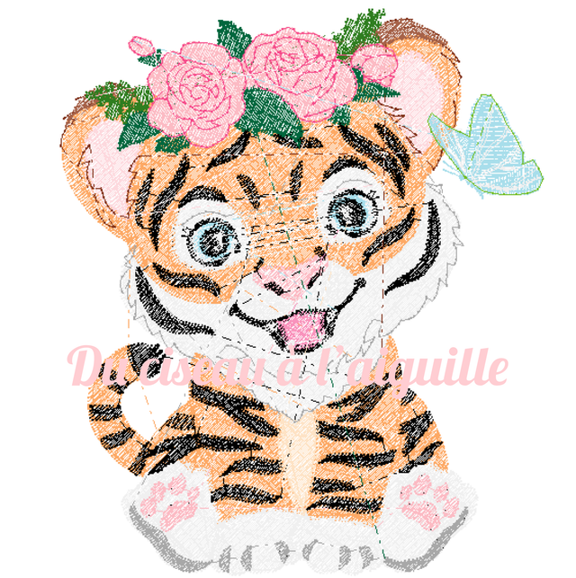 fichier broderie Tigron - Cadre 10x10 /12 Formats