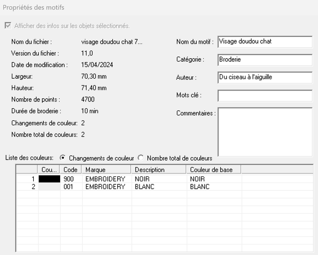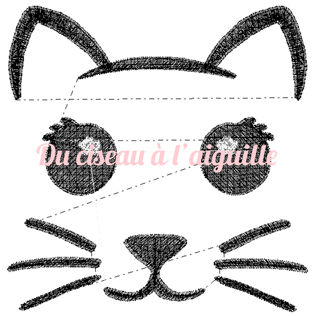Voici ma broderie "Visage doudou chat" de 3 tailles en cadre 10x10 pour 12 formats :