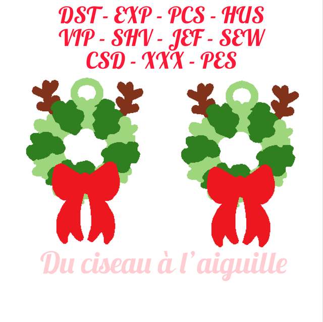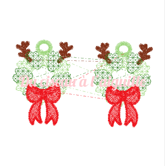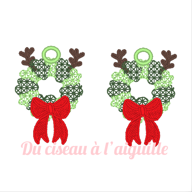fichier broderie boucles d'oreilles en FSL couronne rennes de noël