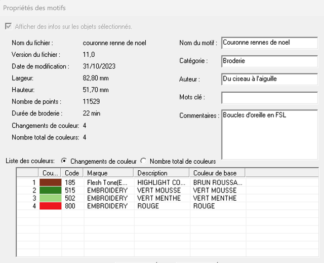 Voici ma broderie d'une paire de boucles d'oreilles en FSL formes "Couronne renne de noel" dans un cadre 10x10 pour 11 formats