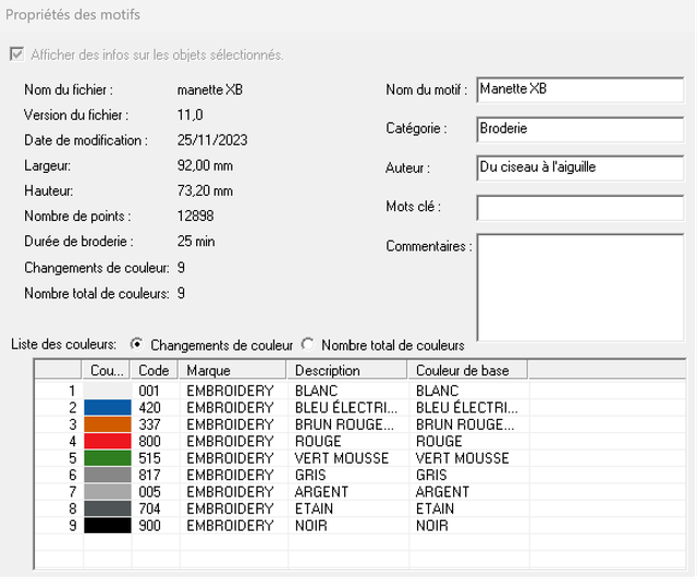 Voici ma broderie "Manette XB " en 3 tailles pour 12 formats :